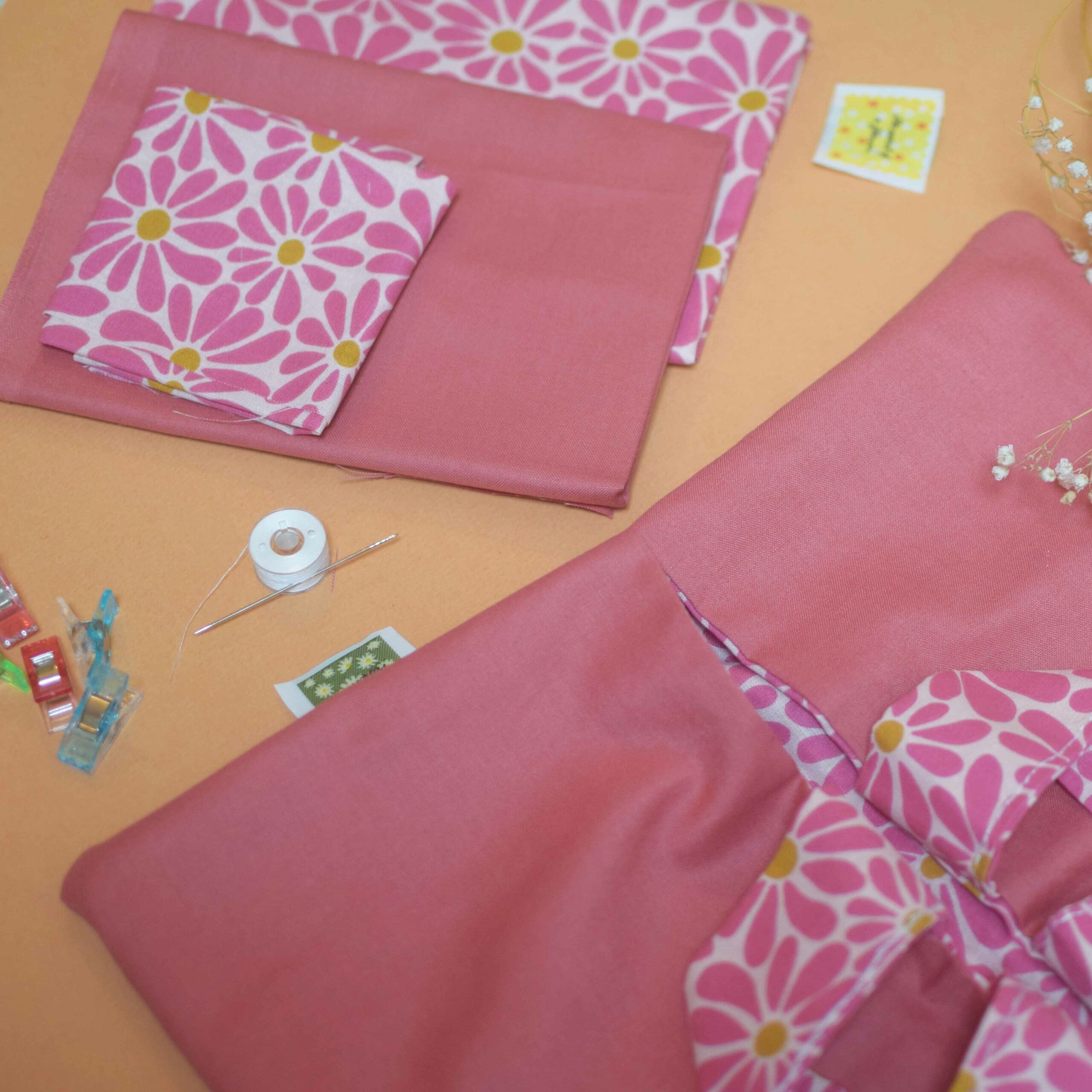 Ce kit sac à tarte couture est parfait pour les débutants, même sans machine à coudre. Tu vas créer ton sac à tarte réversible, lavable et très élégant avec un tissu fleuri d’un côté, et uni de l’autre. Le tout, rehaussé d’une petite étiquette “fait main” à coudre fièrement, parce que oui, tu l’as FAIT.